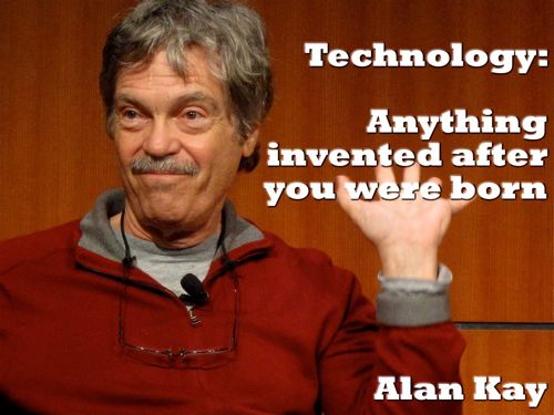 This time I added some more commentary on the profound Alan Kay quote on Technology being something invented after you were born– first with using the quote from Clay Shirky’s Here Comes Everybody (thanks to some Kindle searching from Gardner Campbell– we had chatted about this while walking in NYC):