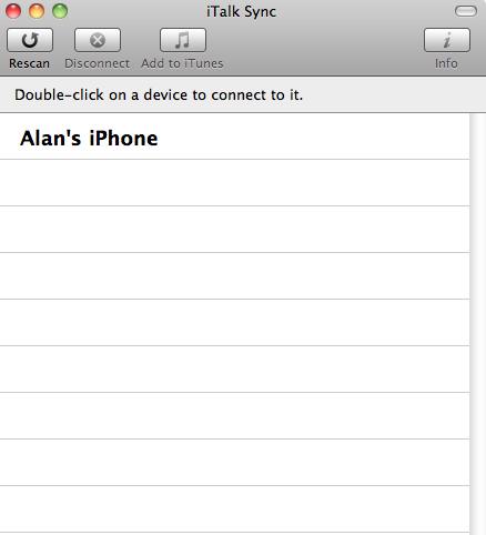 To move files with iTalkSync, you launch the app on your phone and on your computer. The app on the computer detects phones on the same network, and you select which one to connect to: