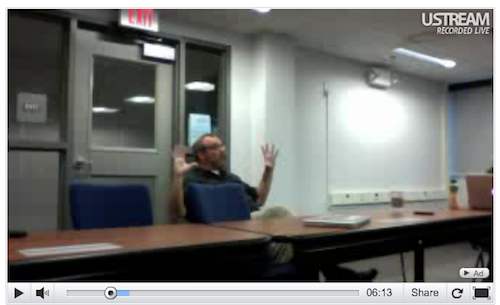The next day, another event triggered me to redo my approach. Jim was doing a session at PSU that Cole had set up for a live video stream via Ustream (before Cole saw the light and started doing his own ds106 casts) and there was another tweeted request to have to cross broadcast to the ds106 radio. I knew there was a way.
