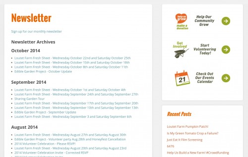 The team liked the front page sliders and were interested in having similar features for their major project areas, such as Loutet Farm, Grow a Row Share a Row, and the Food Hub.