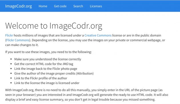 As a creator of my own flickr attribution tool, I was curious to see what another one can do (not as “competition”, we can always use more than one screwdriver in the toolbox). Imagecodr expresses the exact reason I made my own CC Flickr Attribution helper, how many steps it was taking me to go back and forth to publish a photo attribution (plus I was rarely consistent):