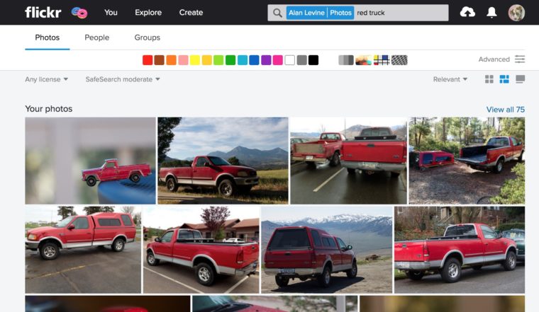Flickr, on the other hand, as old and crippled and antiquated as people make it out to be, offers me full keyword search of my own photos.