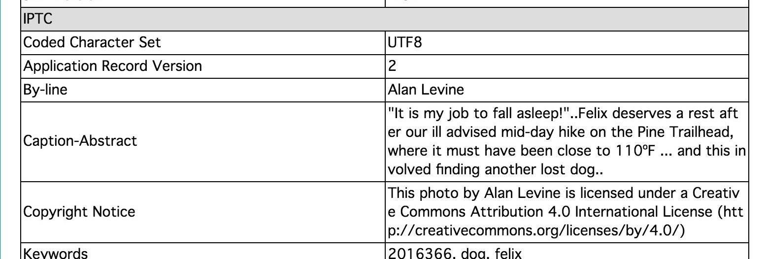 Meta data for the image above shows Creator and Rights statement are included in the image