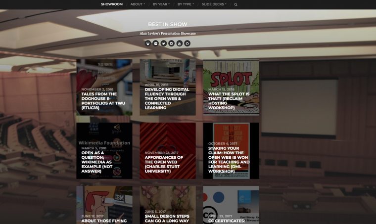 There’s a lot to add to the presentation archive– I have not only the archive of presentations that used to live at http://cogdog.wikispaces.com but also a set of ones also archived that were wikibased presentations at http://cogdoghouse.wikispaces.com.