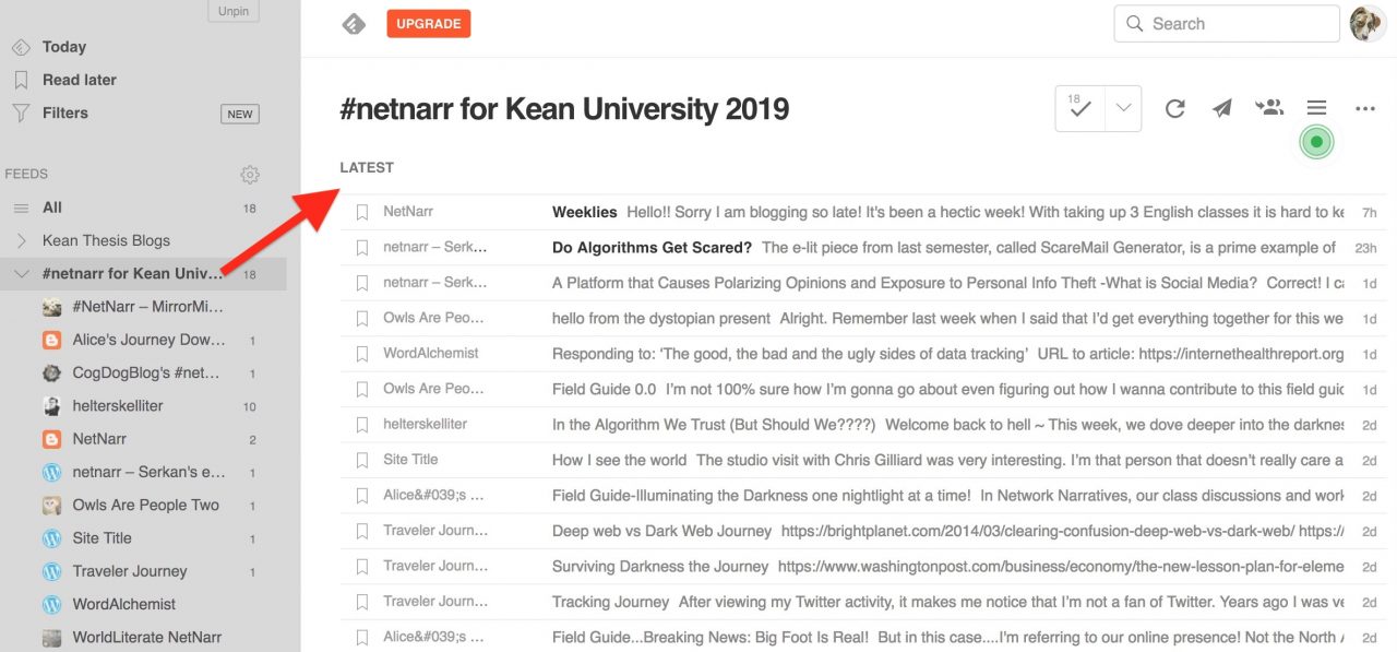 I set up a Feed Reader for any group of feeds in a class I am teaching or a project using the approach. It’s the only sane way to make sure I can scan when students have new posts.