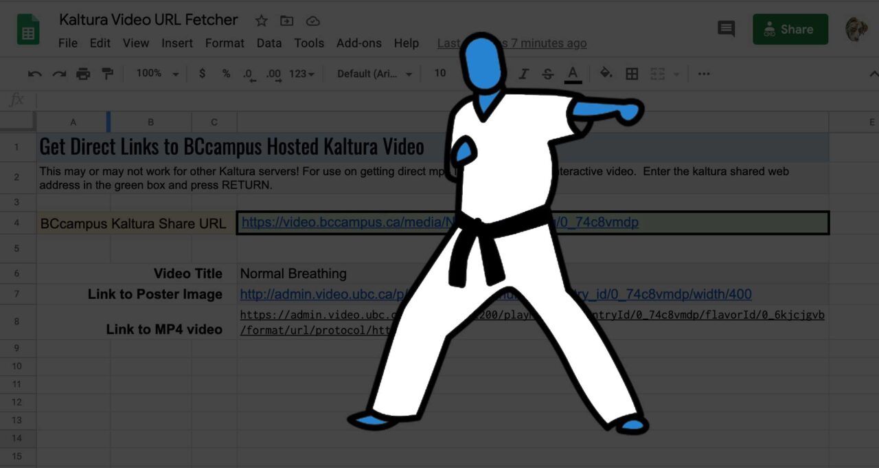 My karate non-knowledge did not stop me from using the metaphor in a post where I thought I was being clever to using some Google Spreadsheets to extract opengraph meta data from Kaltura video URLs (to get the direct link to the video’s mp4, which I noted was buried in the page’s opengraph metadata).