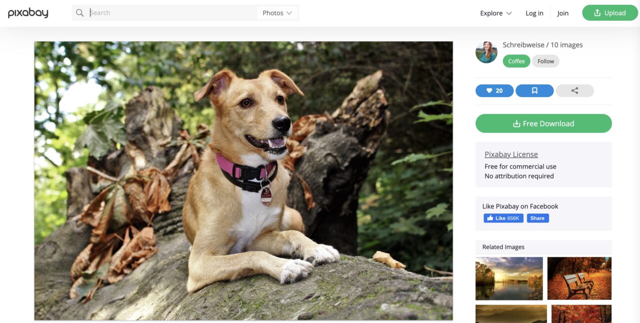 Are they really the creator of this image? Let’s put Google to search for a image source, using “Lens” (reverse image search), where I click Find Image Source. There are many many pages of links to blogs, web sites, ads, all kinds of dog article, and I guarantee (I only looked at a few) none of them credited or linked to the place where the image came from (ahem, because CC0 says you can just grab and image, use it, and not credit the source).
