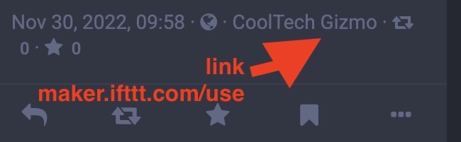 So will I was already cooking with IFTTT, I made a new applet to tweet as well. The gizmo is now operational, in both Twitter and Mastodon. This is going to be a pattern, as I am not quite ready to be panicking about twitter skies falling. Likewise, as fresh and interesting as Mastodon sounds, I am not confident it will be where everyone lands. I’m trying to play both hands now.