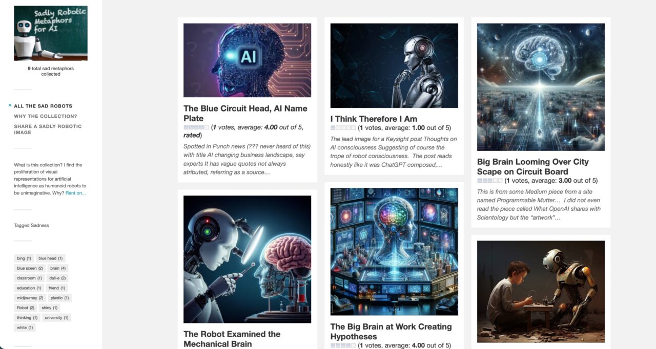 The Better Images of AI About page has a treasure trove of more interesting research and readings, like from the fabulous (and new to me) AI Myths site on AI = shiny humanoid robots