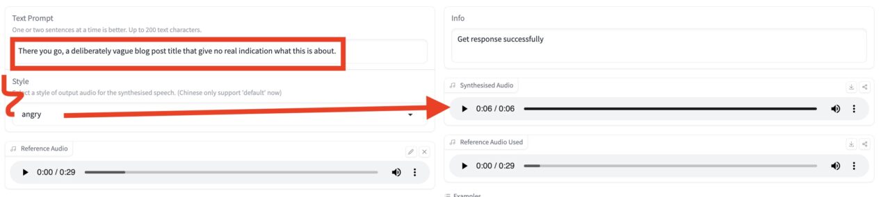 Well maybe that’s not so clear. There’s a bit more at the MyShell project page for OpenVoice. If I can do my un-artificial intelligence summary, OpenVoice uses a very short audio source clip (like 30 seconds) to turn any entered text into audio, but also with an ability to have it speak in different pseudo emotion styles AND supposedly it can also generate it in other languages. All of this apparently done in a smaller technical footprint.