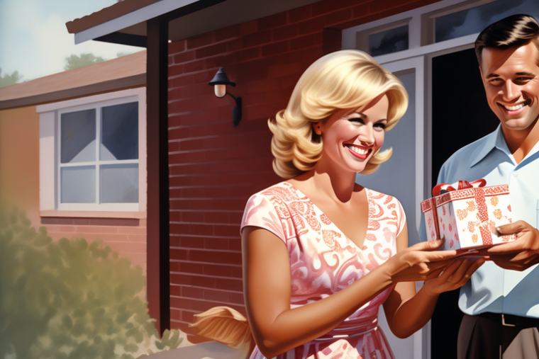 smiling-50-year-old-blonde-haired-woman-matronly-wearing-paisly-dress-standing-above-and-handing-2