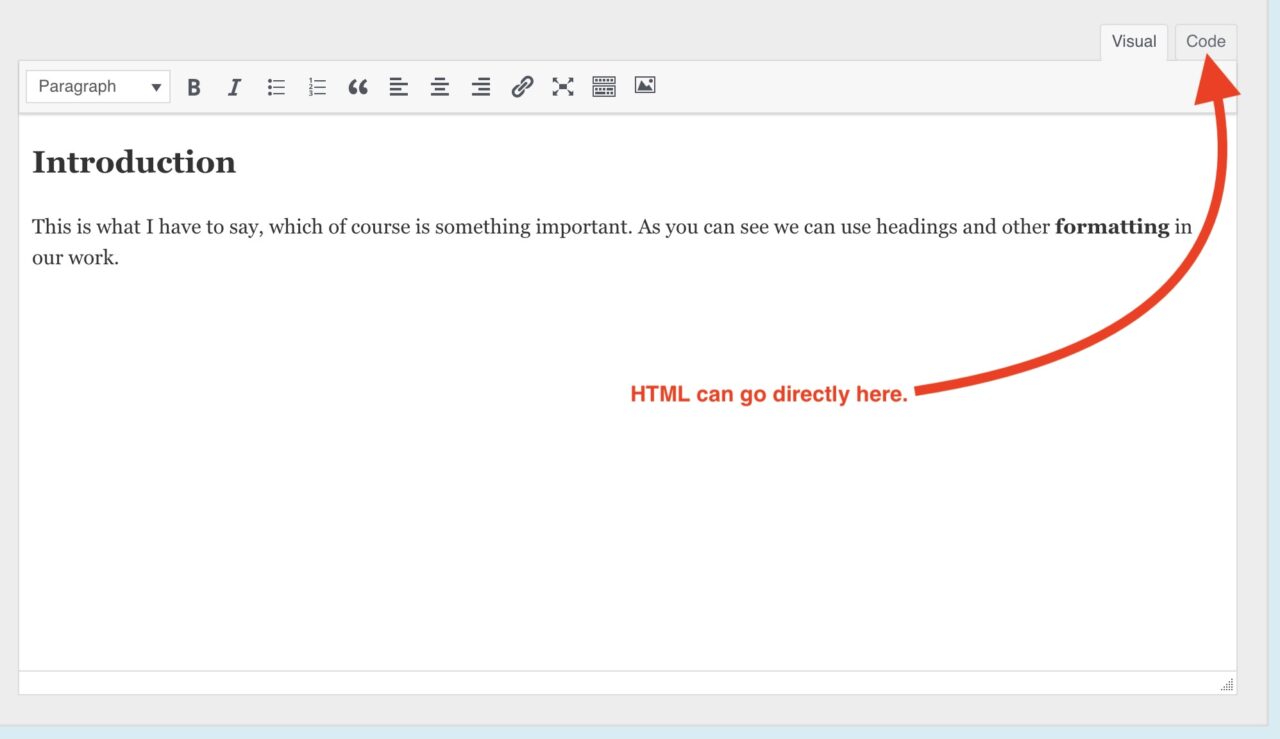 But the SPLOTs use the WordPress wp_editor function to put an editor on the front of the site, which is more or less the “Classic” editor many still love and cling to. It does have the feature, to insert / edit HTML via the “code” tab.