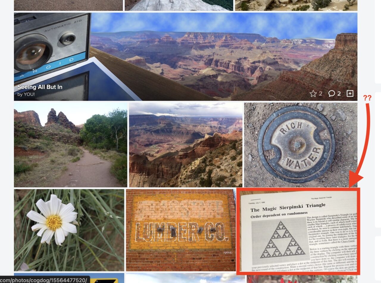 I just carried this idea that there was a relationship of fractals and the Grand Canyon. And all of that surfaced this week as well with that Sierpinski triangle.