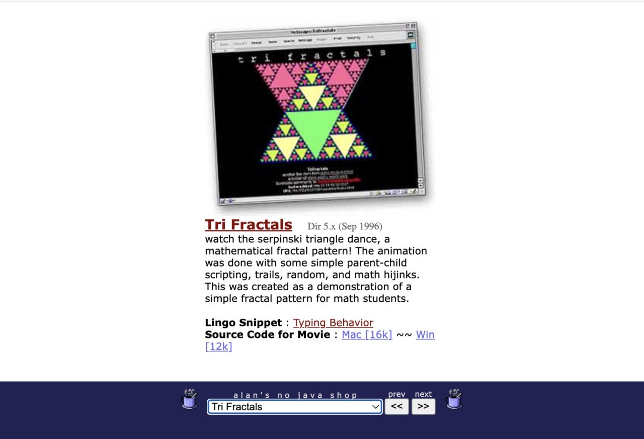 Animated Sierpinski Triangles Tri Fractals created in Director put on the web as Shockwave
