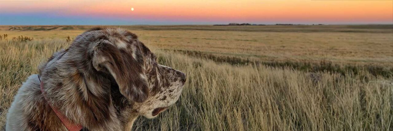 One of the earliest uses I remember was creating the image I use as the header of my Mastodon profile (indeed something mission critical), of course wanting one of the maybe thousands of photos of my pal Felix, but also the land where I live now in Canada. This one felt right. That’s how it works, the gut speaks.