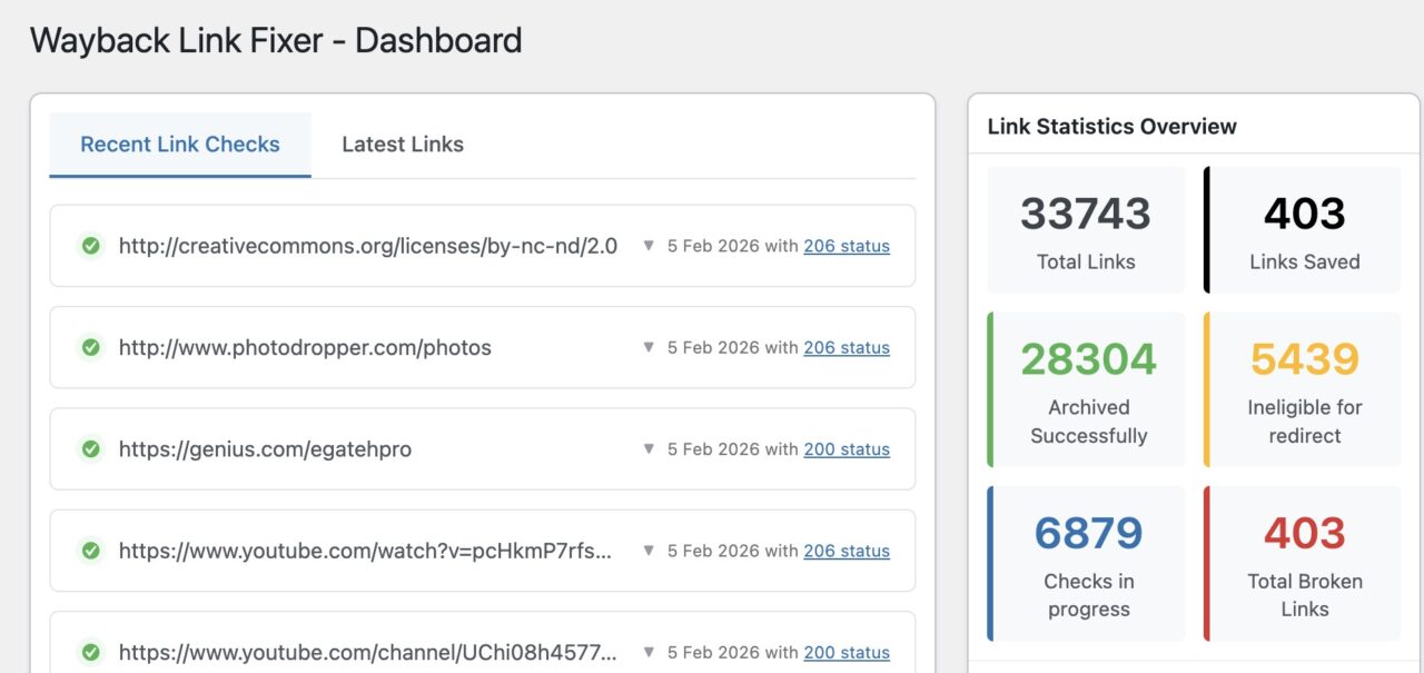 When a linked page disappears, the plugin helps preserve your user experience by redirecting visitors to a reliable archived version. It also works proactively by archiving your own posts every time they’re updated, creating a consistent backup of your content’s history.