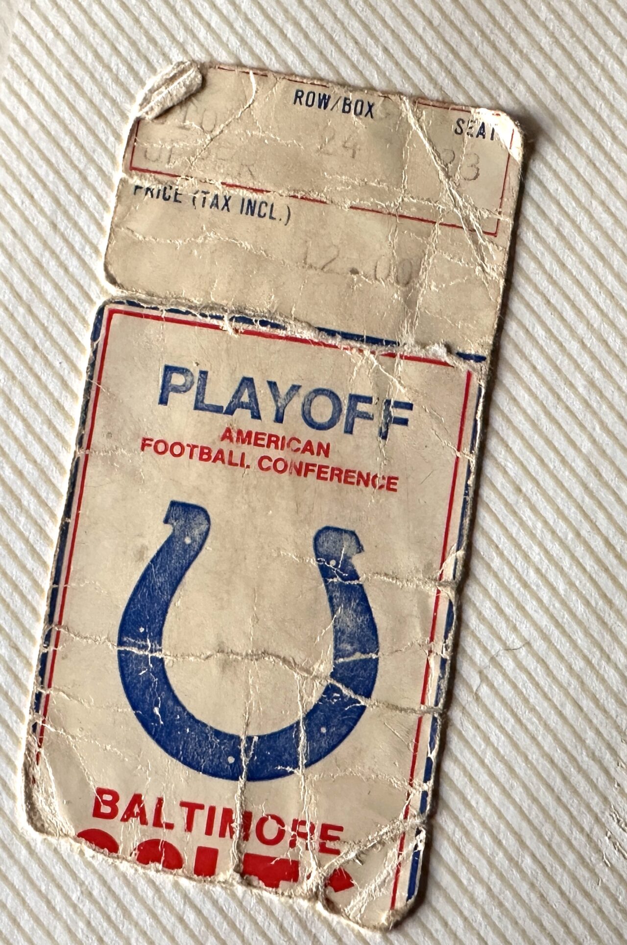 I remember going to Baltimore Colts games in the early 1970s. I knew my grandmother took me to a few games, where we watched Johnny Unitas aka the Golden Arm play. For maybe two years, my Dad had season tickets in the mezzanine section, he would take me or one of my sisters to watch. I barely remember anything beyond being cold at some games and drinking hot cocoa out of the thermos.