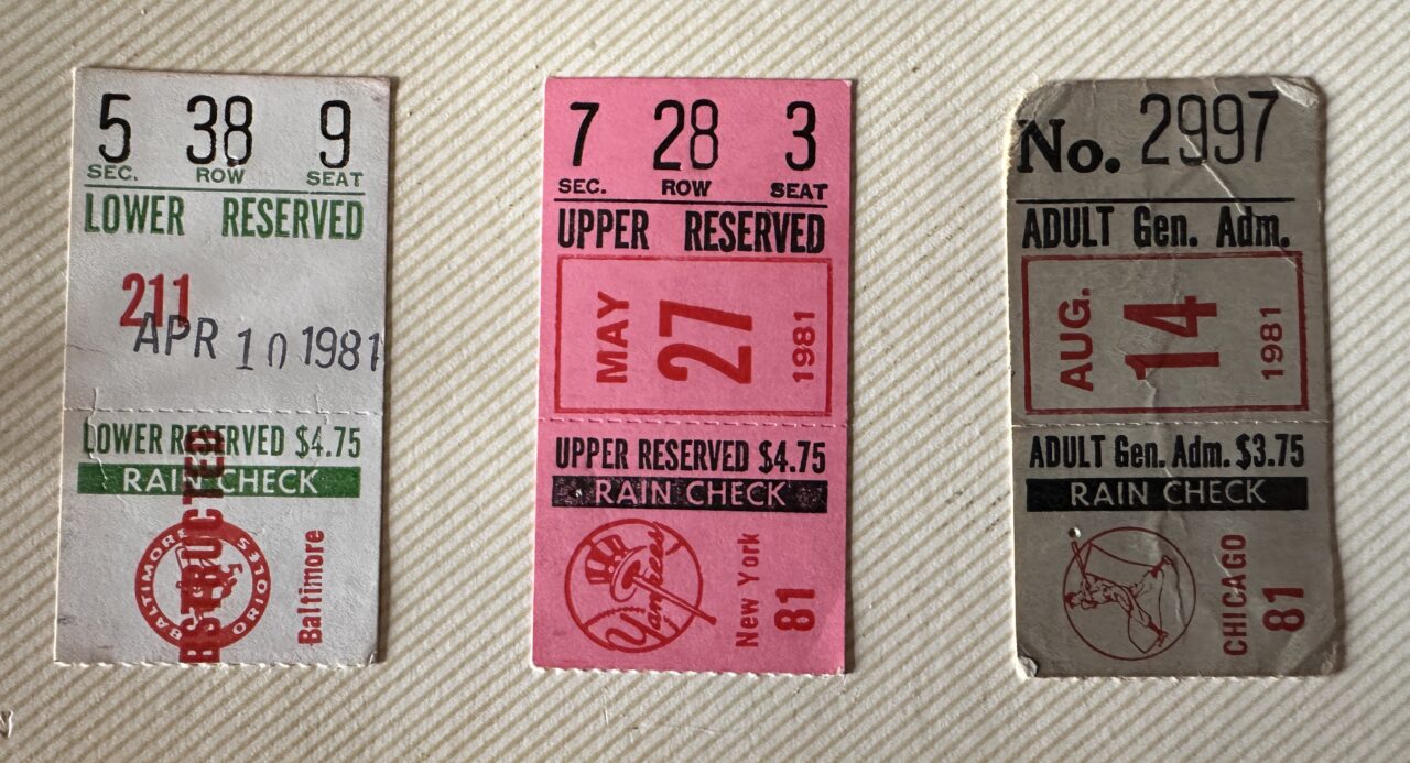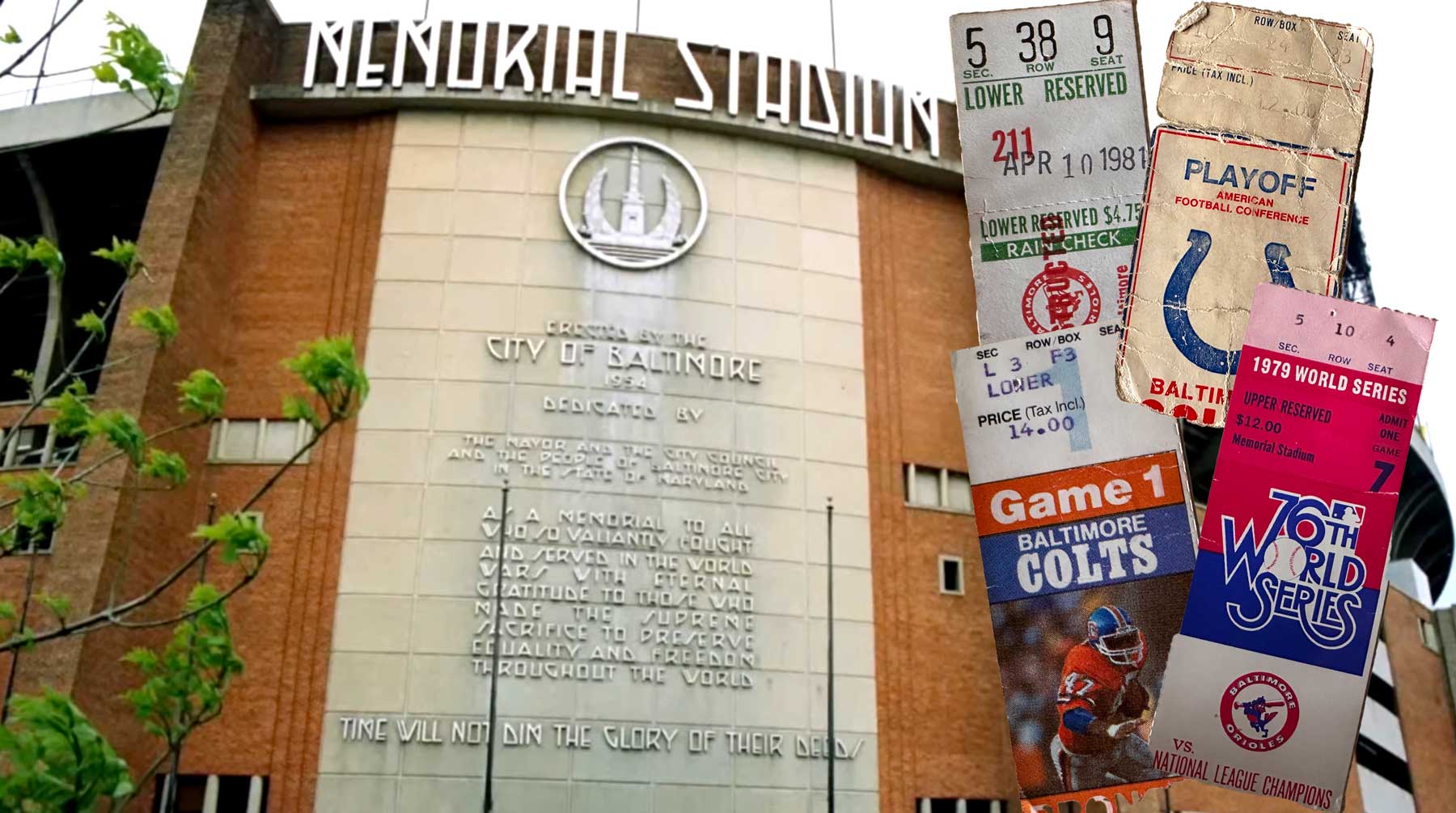 Featured Image: Memorial Stadium in Baltimore from frame of video Memorial Stadium Was So Much Weirder Than You Think combined with various old ticket stubs from my own scrapbook.